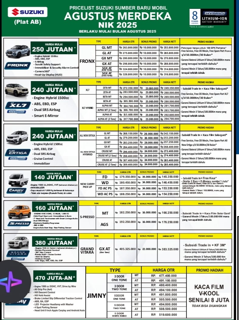 BENEFIT PEMBELIAN DI SUZUKI JOGJA MOBIL :